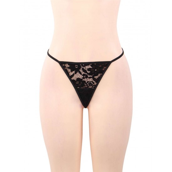 Black Backless Exquisite Lace Babydoll Set