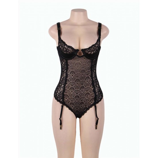 Exquisite Peacock pattern Lace Teddy With Steel Ring