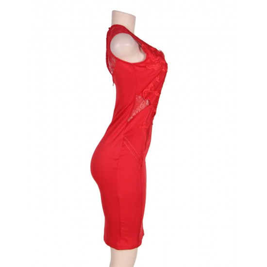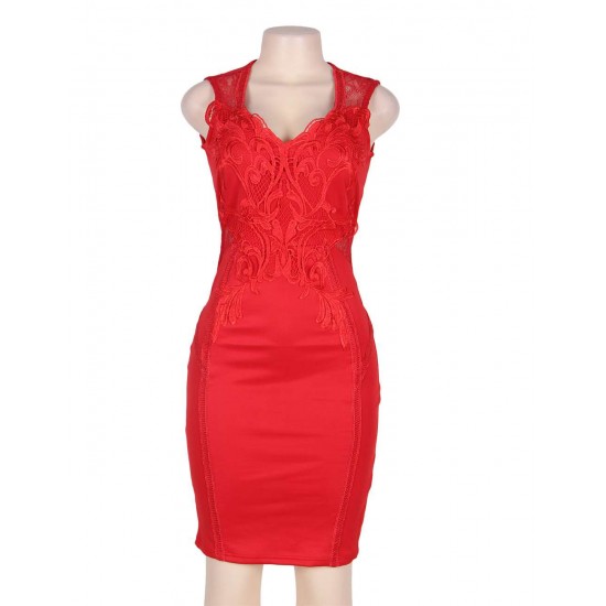 Red Deluxe Decals Fashion Dress Lace Bodycon