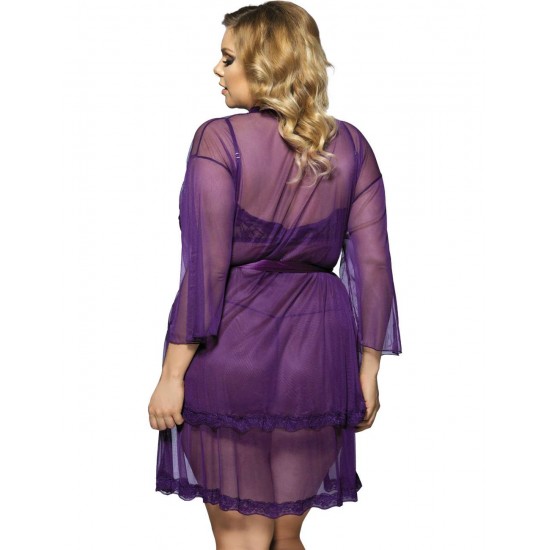 Purple Plus Size 3pc Transparent Lace Robe Lingerie